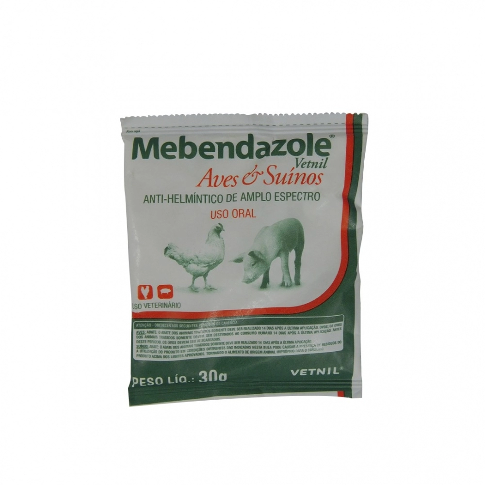 SAUDE ANIMAL>PECUARIA>ANTIPARASITARIO GRANDES ORAL>Vetnil Mebendazole Aves e Suínos 30g