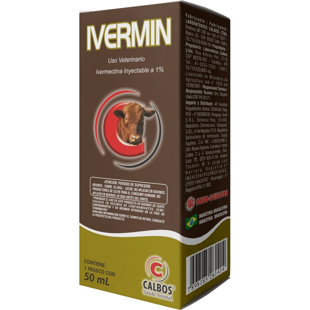 SAUDE ANIMAL>PECUARIA>ANTIPARASITARIO INJET GRANDES>Calbos Ivermin 50ml