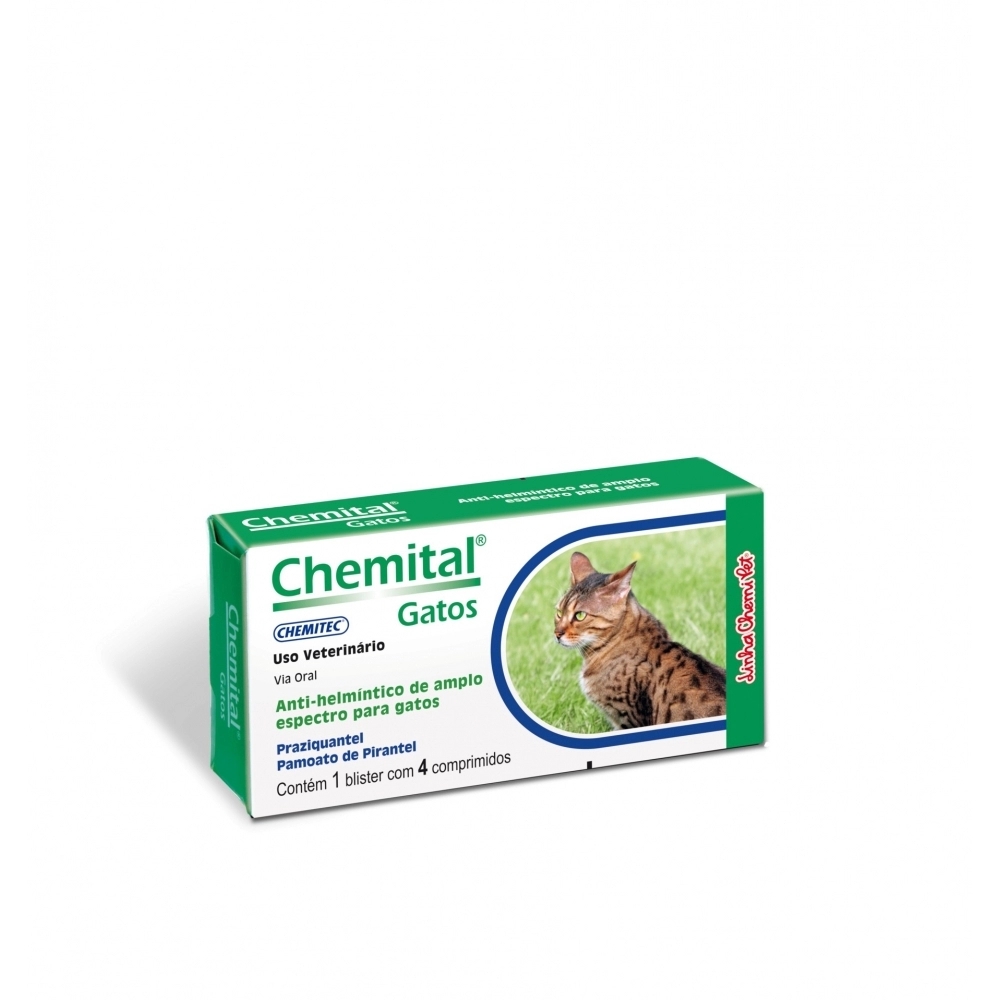 SAUDE ANIMAL>PET>ANTIPARASITARIO PET>Chemitec Chemital Gatos com 4 comprimidos