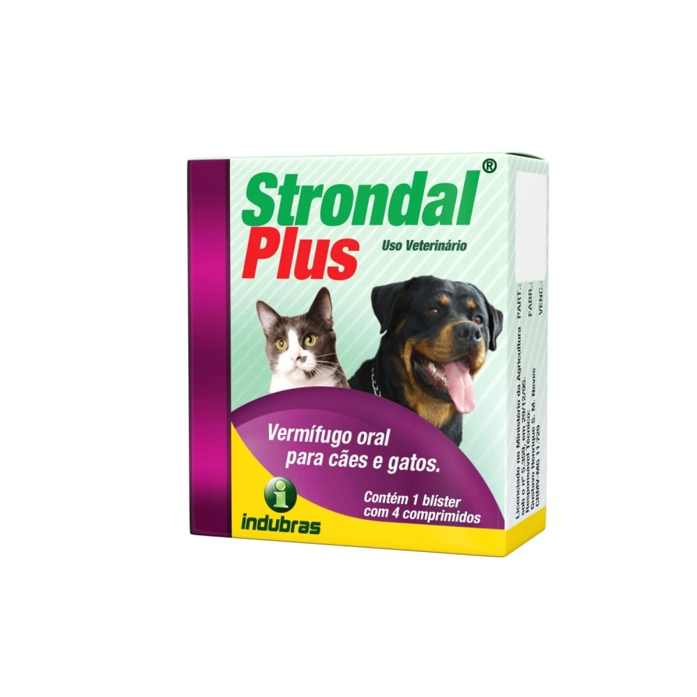 SAUDE ANIMAL>PET>ANTIPARASITARIO PET>Indubras Strondal Plus com 4 comprimidos