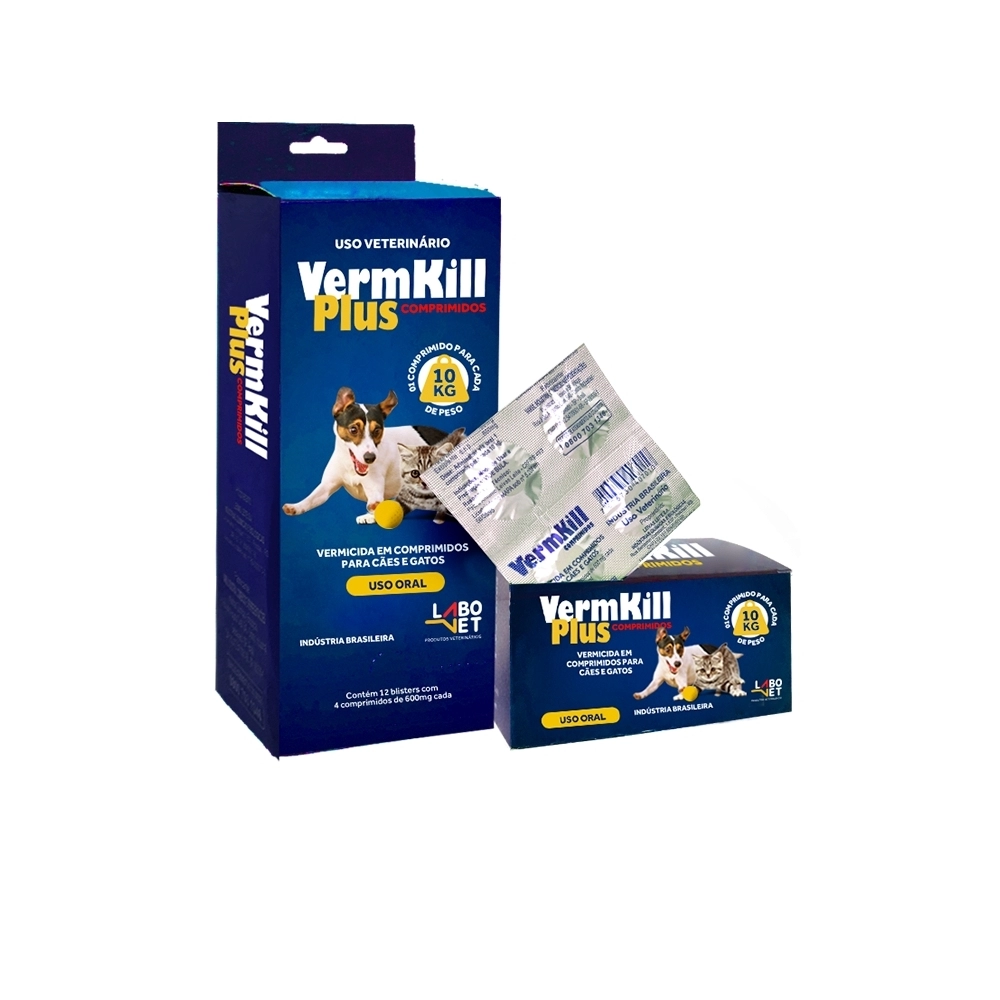 SAUDE ANIMAL>PET>ANTIPARASITARIO PET>Vermkill Plus Hospitalar 12x4 comprimidos Labovet