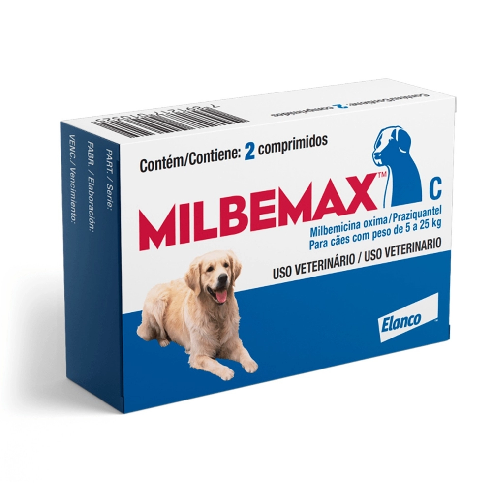 SAUDE ANIMAL>PET>ANTIPARASITARIO PET>Milbemax com 2 comprimidos 5 a 25kg Cão