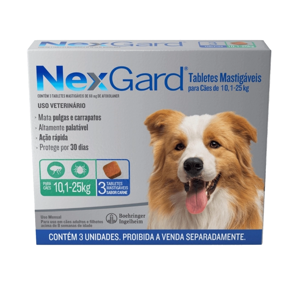 SAUDE ANIMAL>PET>ANTIPARASITARIO PET>Nexgard G 10,1 a 25kg com 3un