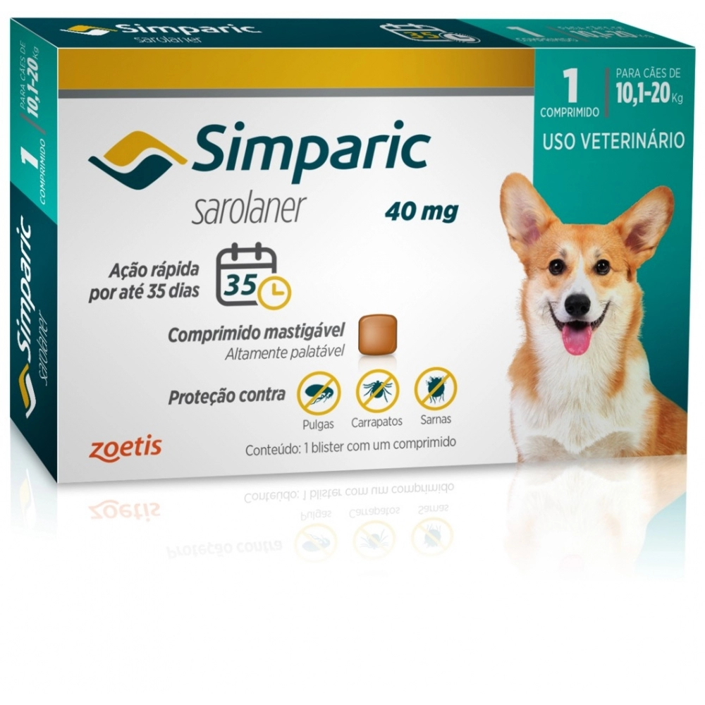 SAUDE ANIMAL>PET>ANTIPARASITARIO PET>Simparic 40mg com 1 comprimido 10,1 até 20kg