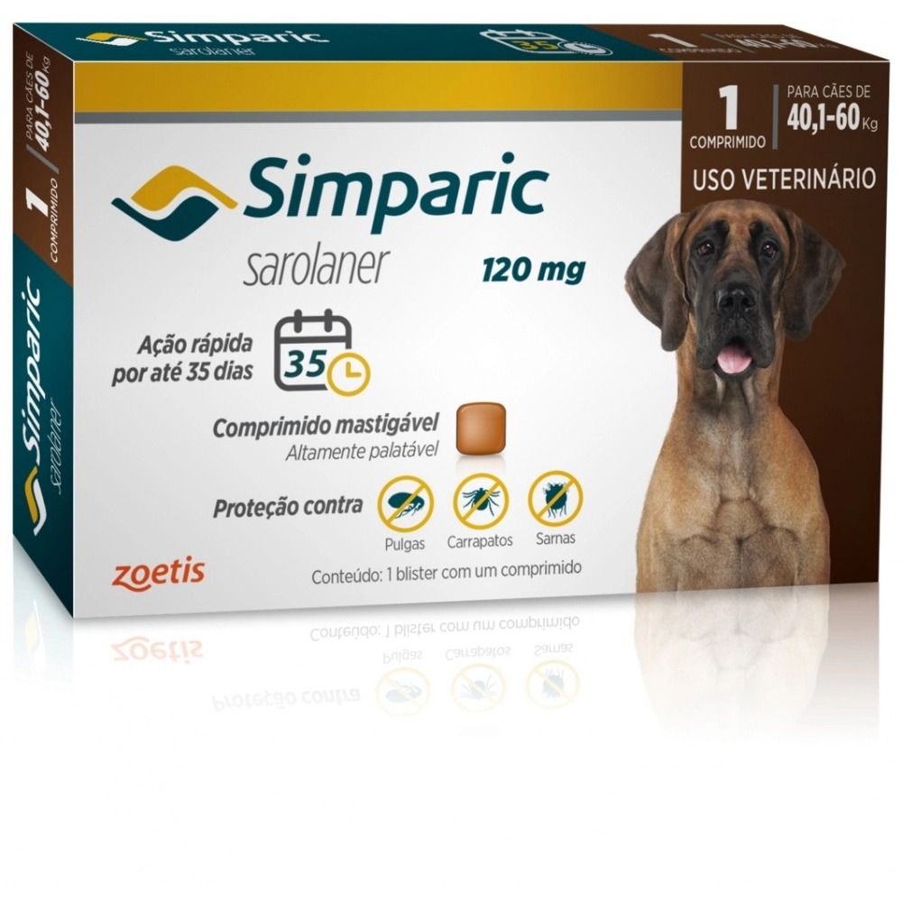 SAUDE ANIMAL>PET>ANTIPARASITARIO PET>Simparic 120mg com 1 comprimido 40,1 até 60kg
