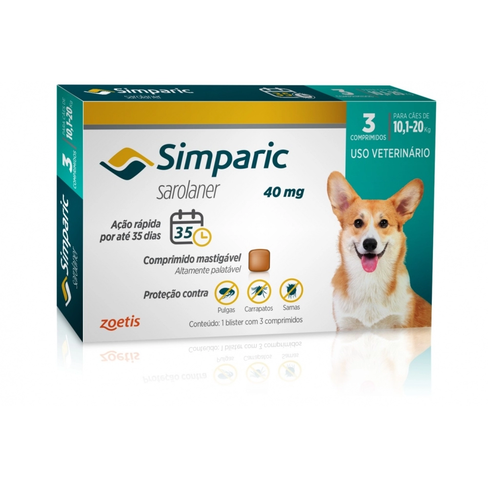 SAUDE ANIMAL>PET>ANTIPARASITARIO PET>Simparic 40mg com 3 comprimidos 10,1 até 20kg