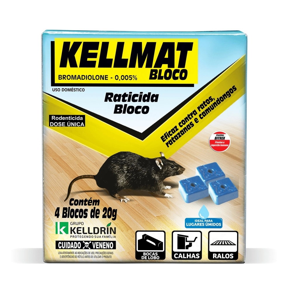 DOMO SANITÁRIOS>CONTROLE DE PRAGAS>DOMO SANITARIO>Kelldrin Kellmat Raticida Bloco 20g