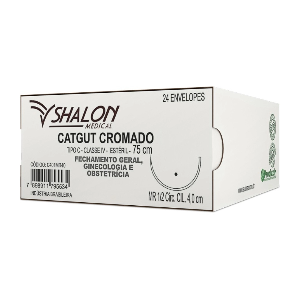 MATERIAL HOSPITALAR>SUTURA>FIO SUTURA CATGUT CROMADO>Shalon Fio Catgut Cromado 4-0 com Agulha 3cm