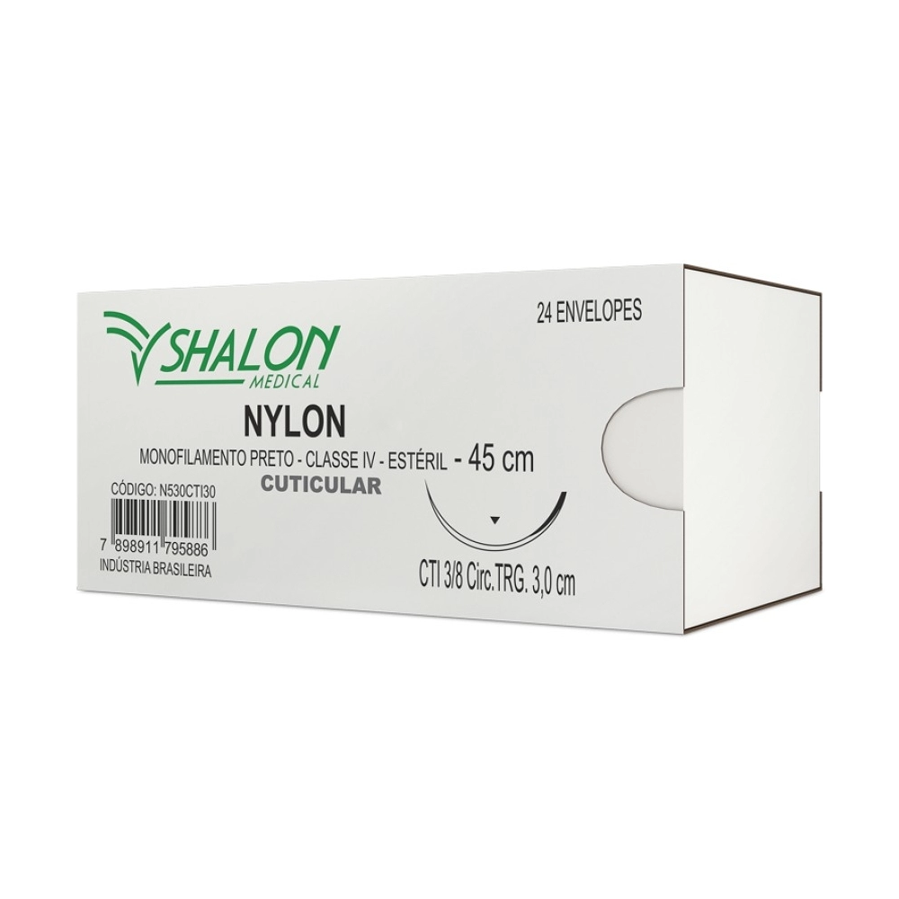 MATERIAL HOSPITALAR>SUTURA>FIO SUTURA NYLON>Shalon Fio Nylon Monofilamento Preto 3-0 com Agulha 3cm