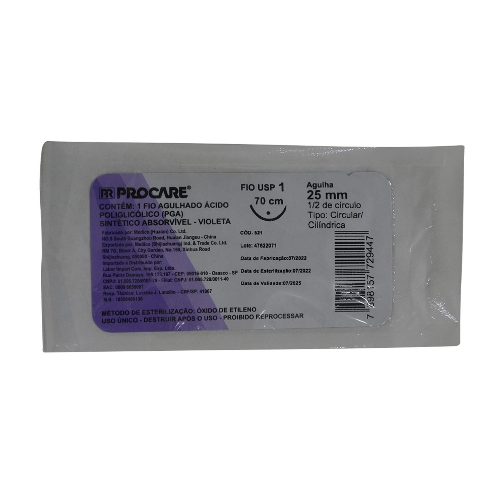 MATERIAL HOSPITALAR>SUTURA>FIO SUTURA POLIGLICOLICO>Labor Import Procare Fio Ácido Poliglicólico 1 com Agulha 2,5cm 1/2
