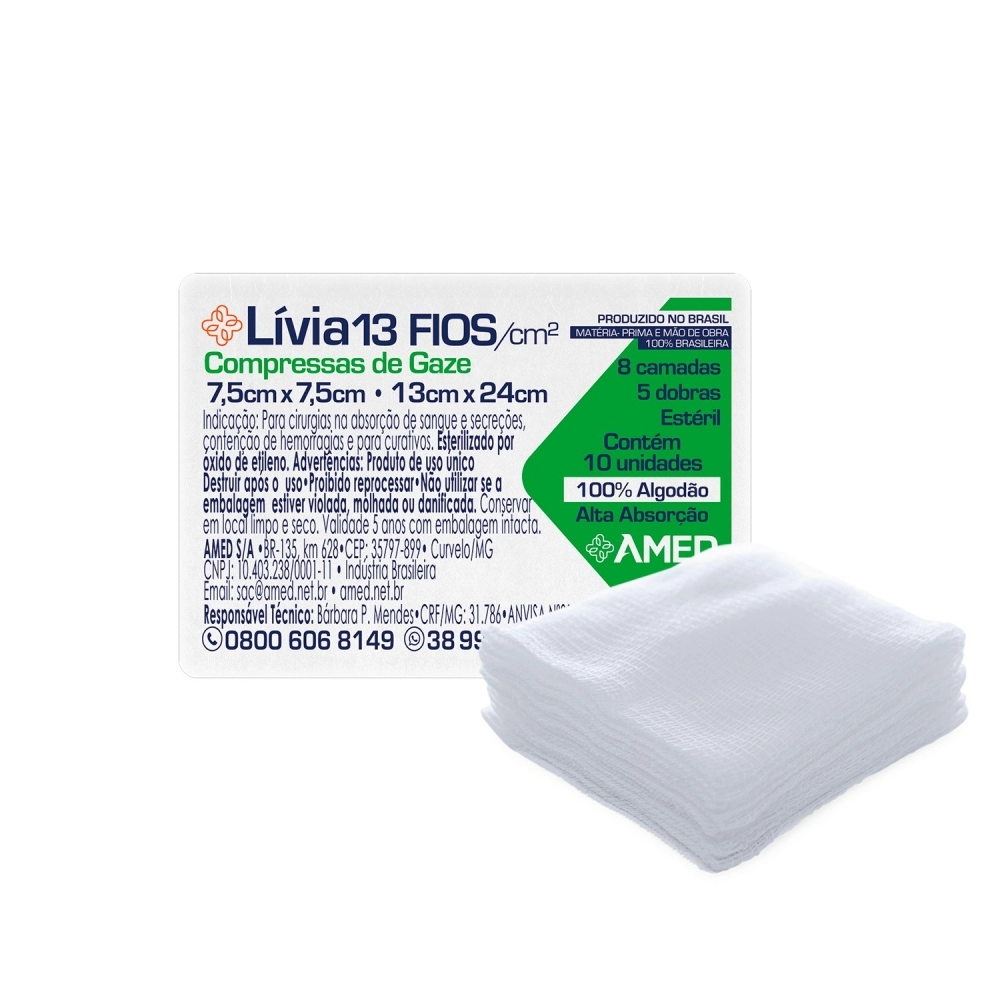 MATERIAL HOSPITALAR>TÊXTIL>GAZE ESTÉRIL>Compressa Gaze Estéril 7,5x7,5 Pacote com 10un