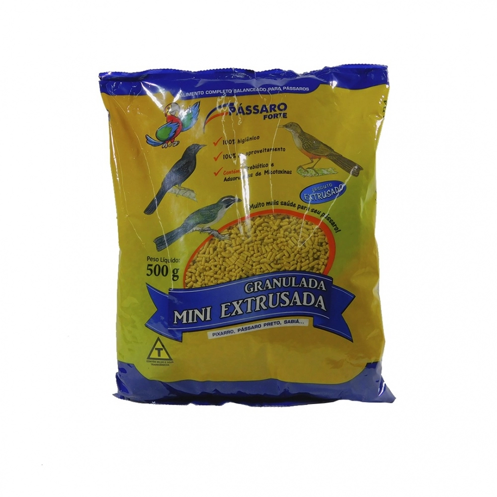 PETFOODS>AVES>LINHA AGUIA SEMENTES>Pássaro Forte Granulada Fina Mini Extrusada Banana 500g