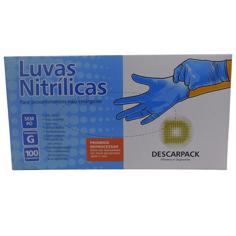 MATERIAL HOSPITALAR>INSUMO HOSPITALAR>LUVA NITRILO>Descarpack Luva Procedimento Nitrilo Azul G com 100un