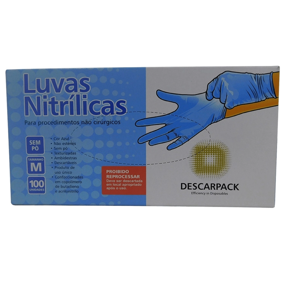 MATERIAL HOSPITALAR>INSUMO HOSPITALAR>LUVA NITRILO>Descarpack Luva Procedimento Nitrilo Azul M com 100un