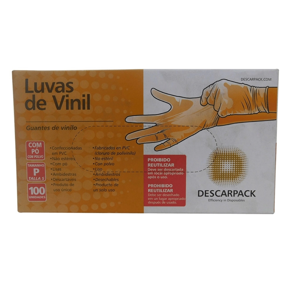 MATERIAL HOSPITALAR>INSUMO HOSPITALAR>LUVA VINIL>Descarpack Luva Vinil com Pó Transparente P