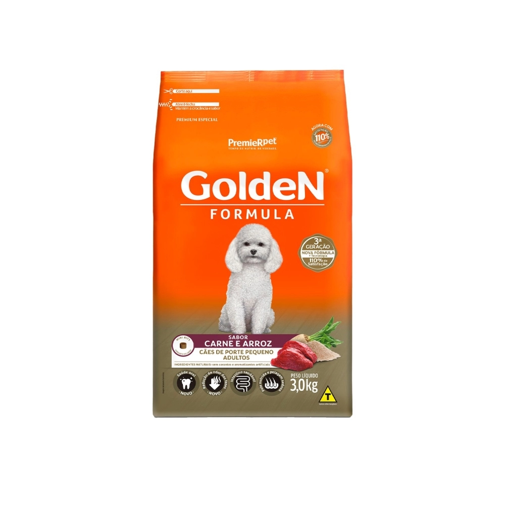 PETFOODS>CÃES>PREMIUM ESPECIAL CÃO>Golden Adulto Raças Pequenas Carne 3kg