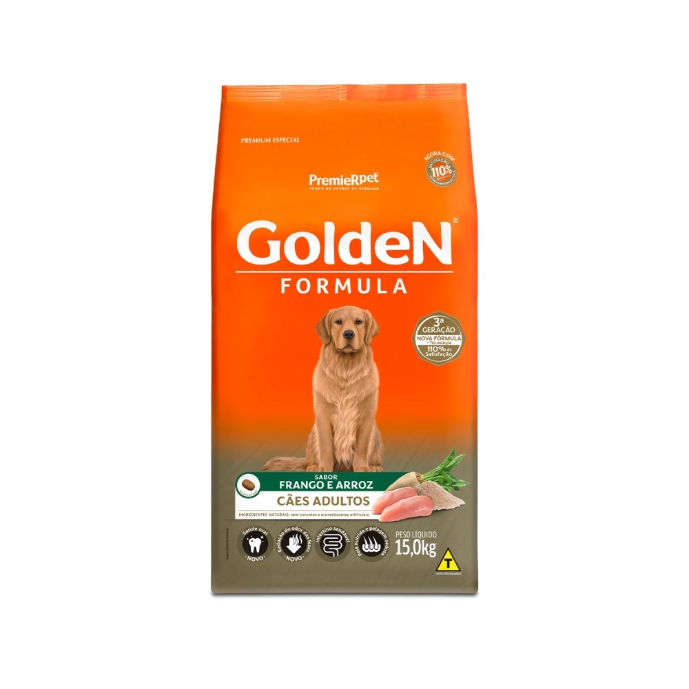 PETFOODS>CÃES>PREMIUM ESPECIAL CÃO>Golden Adulto Frango e Arroz 15kg