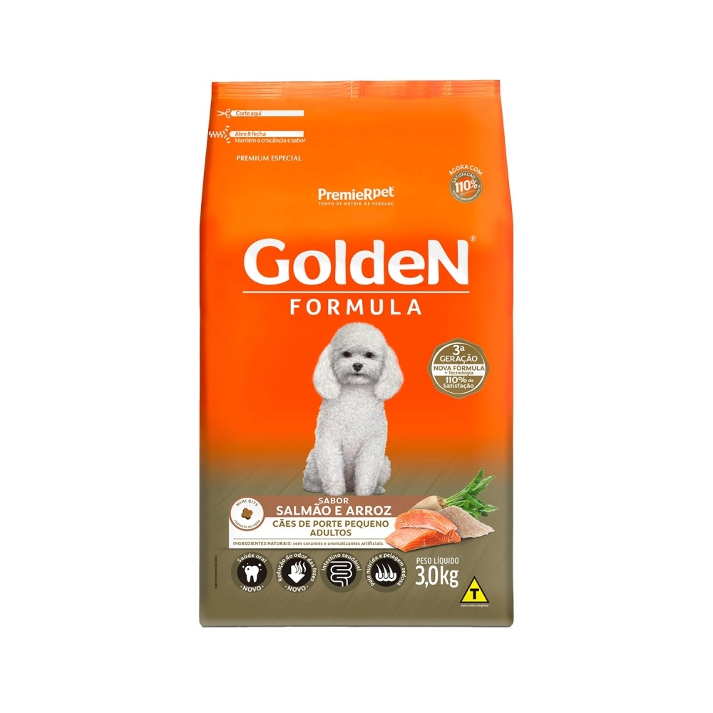 PETFOODS>CÃES>PREMIUM ESPECIAL CÃO>Golden Adulto Raças Pequenas Salmão 3kg