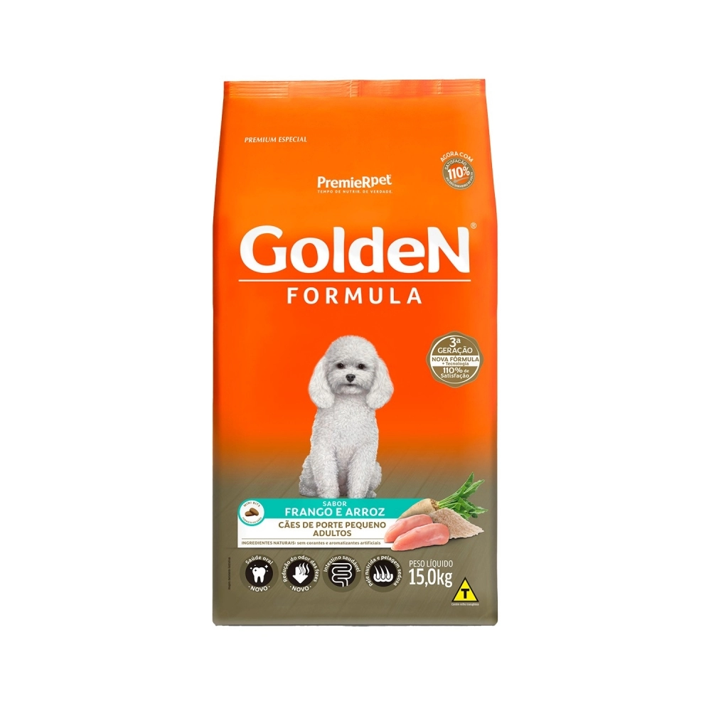 PETFOODS>CÃES>PREMIUM ESPECIAL CÃO>Golden Adulto Raças Pequenas Frango e Arroz 15kg