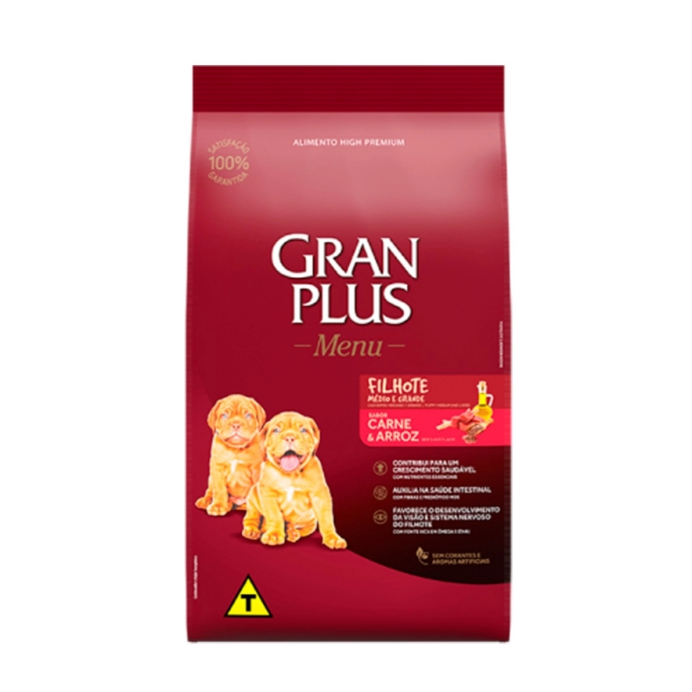PETFOODS>CÃES>PREMIUM ESPECIAL CÃO>GranPlus Menu Cão Filhote Raças Médias e Grandes Carne Arroz 15kg