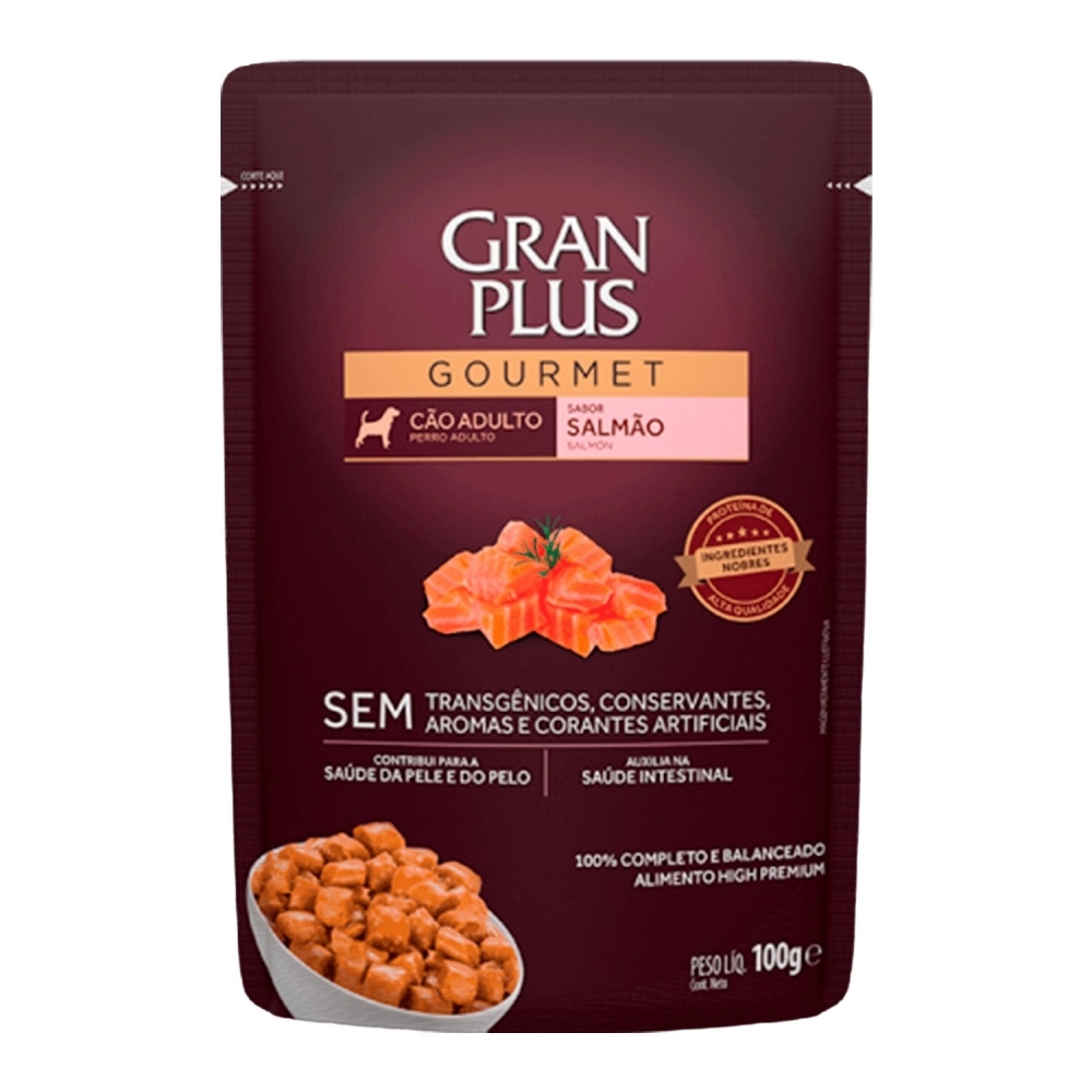 PETFOODS>CÃES>PREMIUM ESPECIAL UMIDA CÃO>GranPlus Sachê Gourmet Cão Adulto Salmão 100g