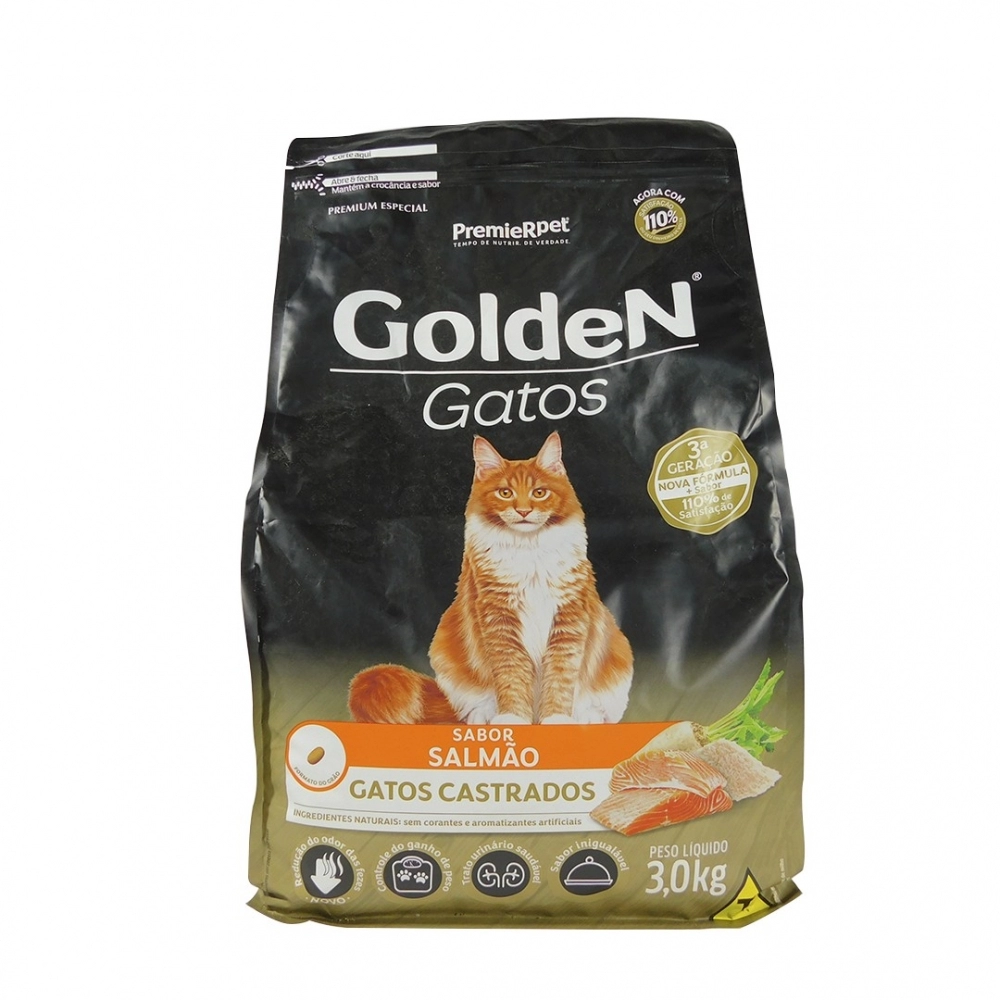 PETFOODS>GATOS>PREMIUM ESPECIAL>Golden Gato Adulto Castrado Salmão 3kg