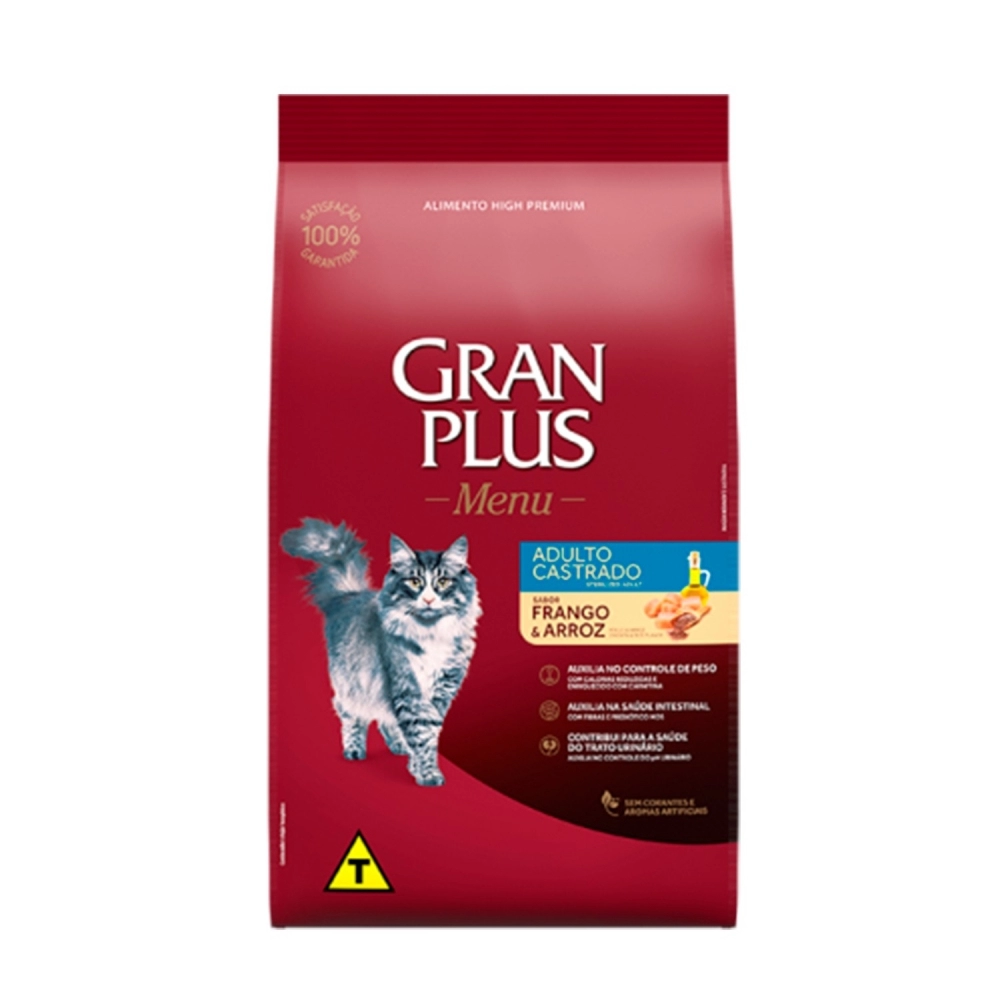 PETFOODS>GATOS>PREMIUM ESPECIAL>GranPlus Menu Gato Castrado Frango Arroz 10,1kg