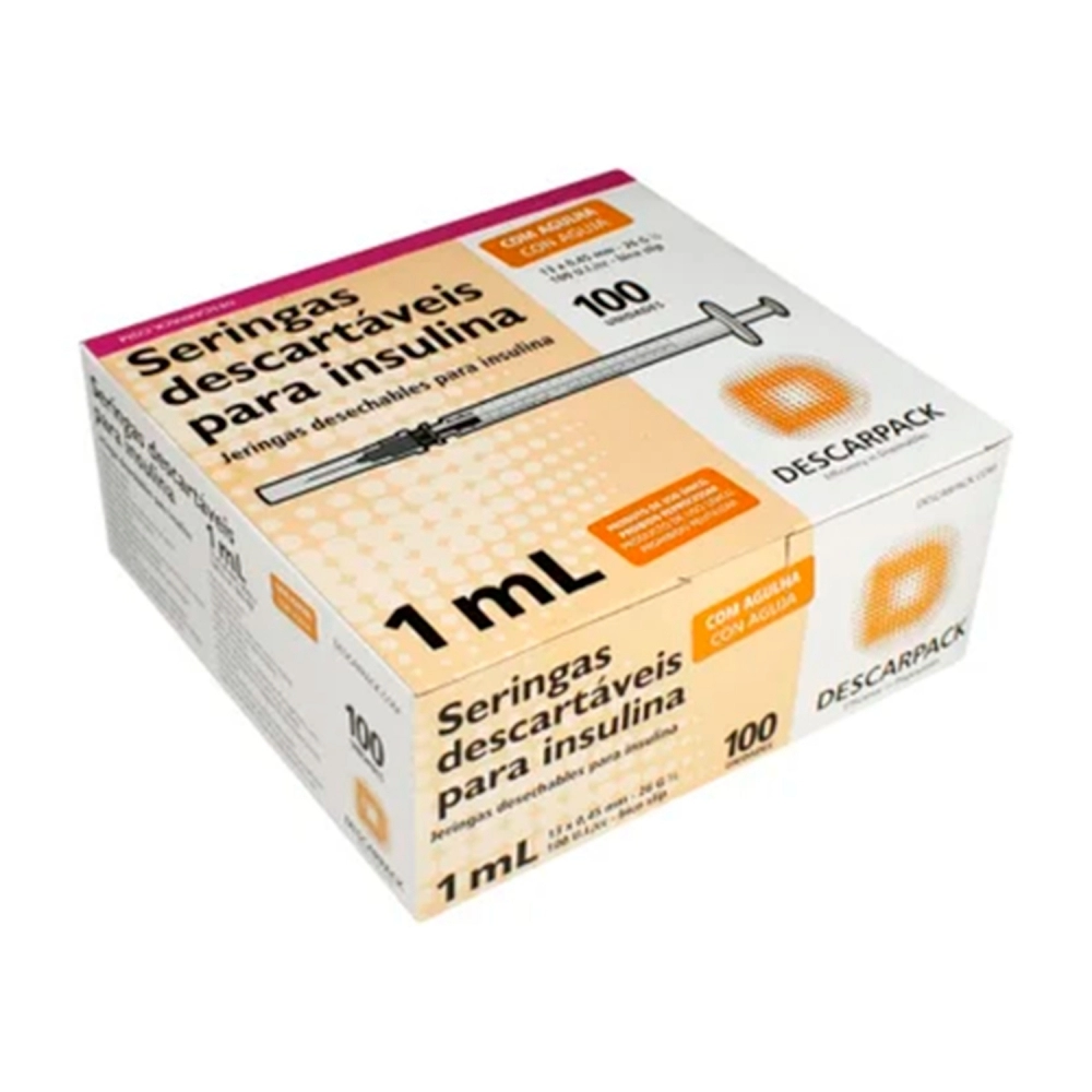 MATERIAL HOSPITALAR>INSUMO HOSPITALAR>SERINGA SLIP>Descarpack Seringa 1ml Para Insulina com Agulha 13x0,45mm