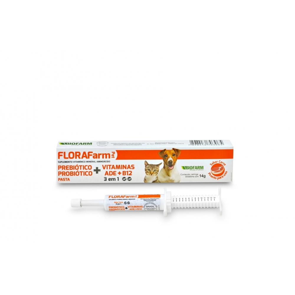 SAUDE ANIMAL>PET>SUPLEMEMTOS PET>Biofarm Florafarm Pet 14g